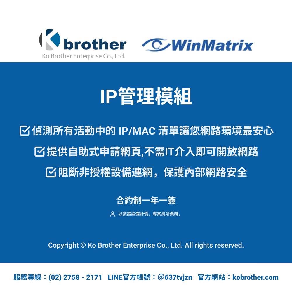 Ko Brother 提供多重加值維護服務,請洽詢業務人員。